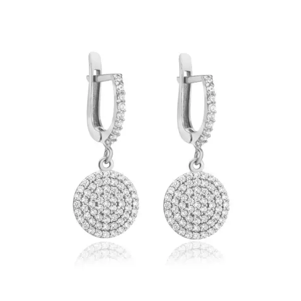 עגילי זהב לבן 14K “מעגלים” 5 שורות